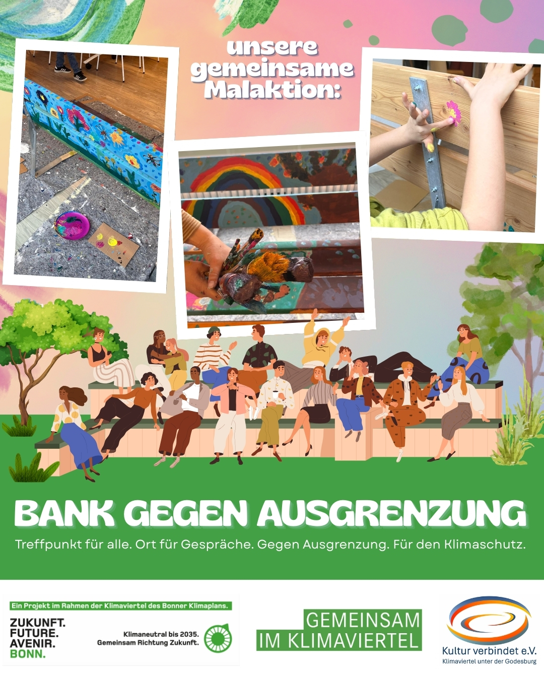 Kinder haben am 1. November 2025 eine Bank gestaltet, die auf dem Klimaviertel-Fest als Zeichen gegen Ausgrenzung und für Gemeinschaft präsentiert wurde.